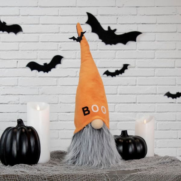 Standing Gnome "Boo" Halloween Figure-19.75"-Orange and Gray