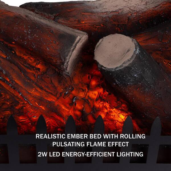 19 in. 1500-Watt Electric Log Fireplace Insert Baseboard Heater with Realistic LED Flames