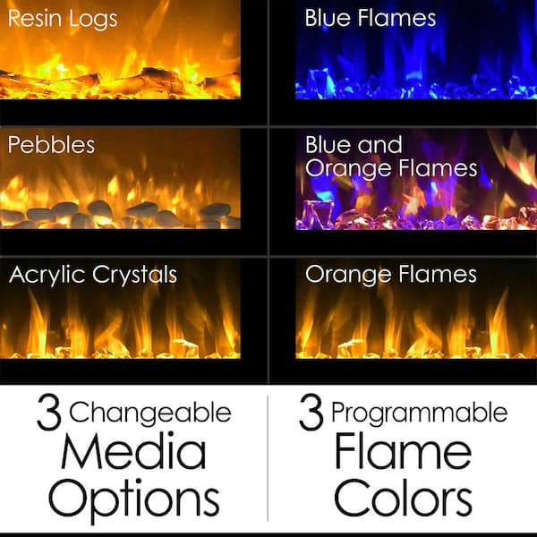 5110 BTU 50 in. Front Vented Fireplace Electric Furnace Wall Mount or Recessed-3 Color LED Flame, 5 Brightness Levels