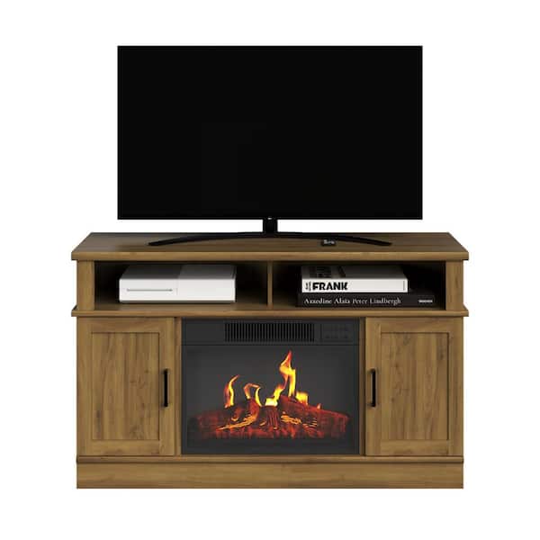 TV Stand with Electric Fireplace, Brown