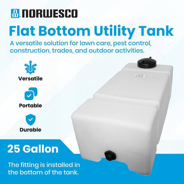25 Gal. Rectangular Flat Bottom Utility Tank for Trailers and Lawn Care in White