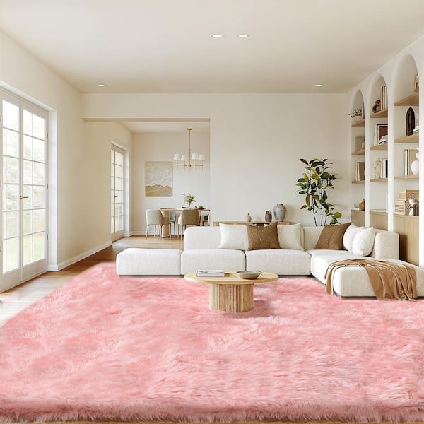 10X12 Large Rug Pink Fluffy Fuzzy Furry Soft Faux Sheepskin Fur Rug Area Rug