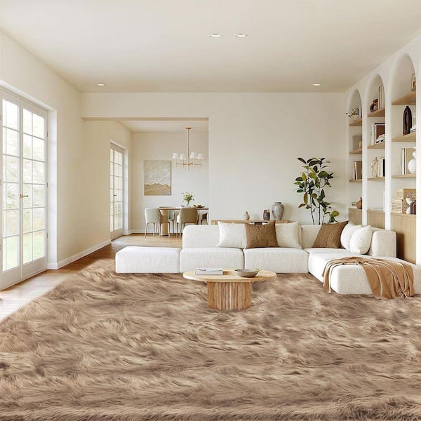 9X12 Large Rug Light Brown Faux Fur Rug Fluffy Fuzzy Furry Soft Area Rug