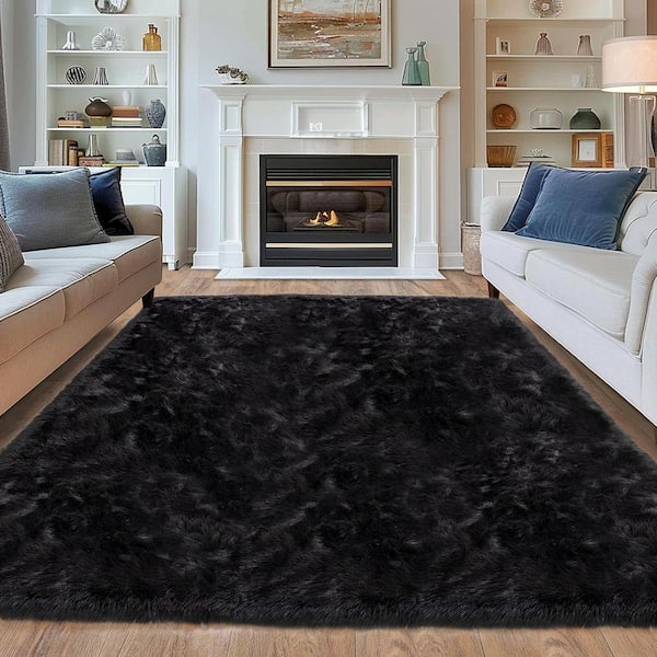 Black 5 ft. x 7 ft. Faux Fur Rug Fluffy Fuzzy Furry Rug Area Rug