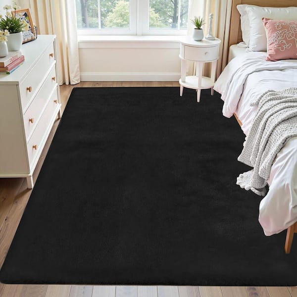 Black Large Rug 6 ft. x 9 ft Fluffy Fuzzy Faux Fur Rug Plush Soft Furry Rug Area Rug
