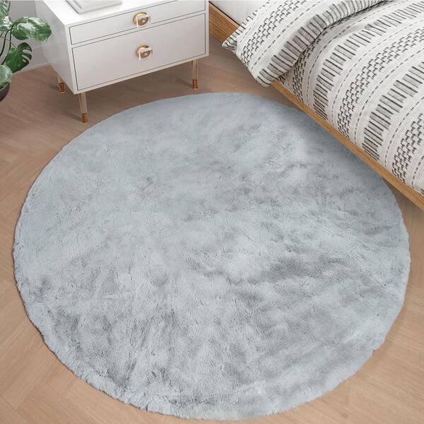 Gray 4 ft. x 4 ft. Circle Rug Fluffy Faux Fur Rug Plush Fuzzy Rug Round Area Rug
