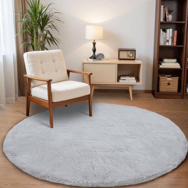 Gray 5 ft. x 5 ft. Circle Rug Fluffy Faux Fur Rug Furry Fuzzy Rug Round Area Rug