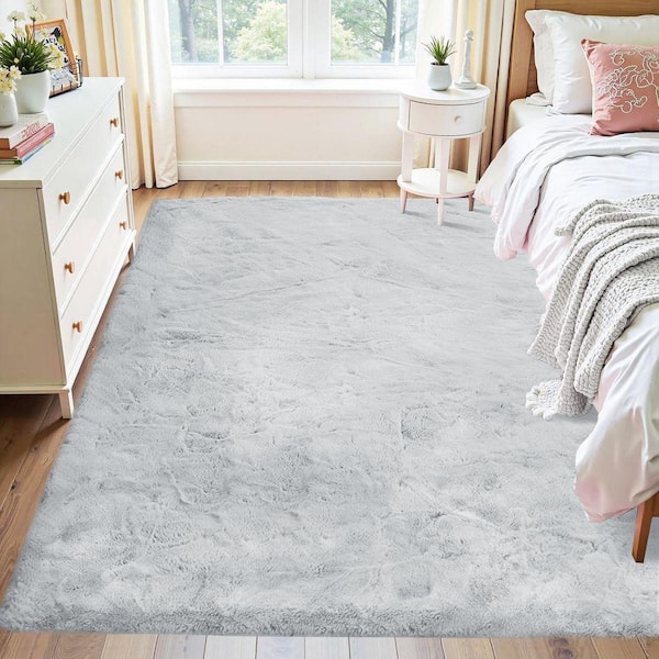 Gray 6 ft. x 9 ft Fluffy Fuzzy Faux Fur Rug Large Rug Plush Soft Furry Rug Area Rug