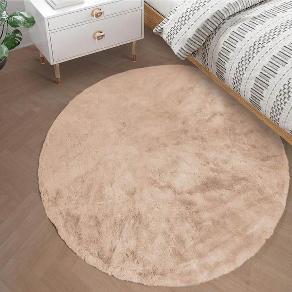 Light Brown 4 ft. x 4 ft. Circle Rug Fluffy Faux Fur Rug Plush Fuzzy Rug Round Area Rug