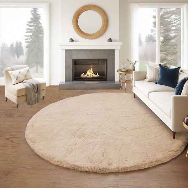 Light Brown 5 ft. x 5 ft. Circle Rug Fluffy Faux Fur Rug Furry Fuzzy Rug Round Area Rug