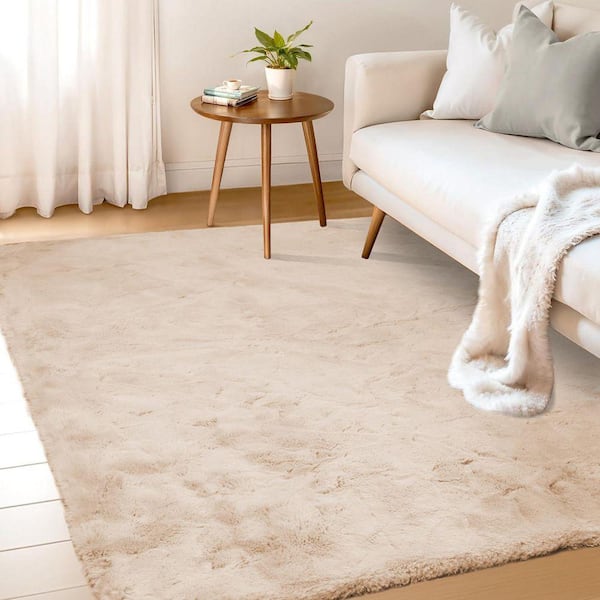 Light Brown 5 ft. x 7 ft Fluffy Fuzzy Faux Fur Rug Plush Soft Furry Rug Area Rug
