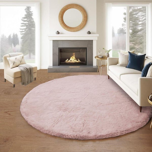 Pink 5 ft. x 5 ft. Circle Rug Fluffy Faux Fur Rug Furry Fuzzy Rug Round Area Rug