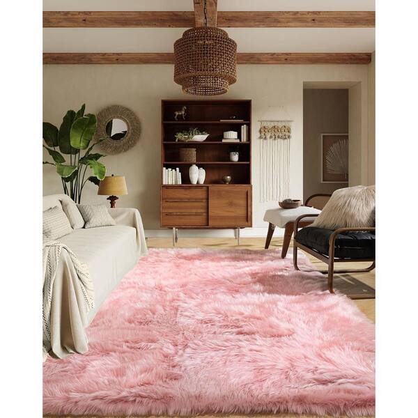 Pink 5 ft. x 8 ft. Fluffy Fuzzy Furry Faux Fur Sheepskin Rug Area Rug