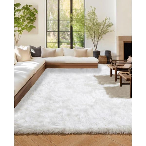 White 10 ft. x 12 ft. Large Rug Fluffy Fuzzy Furry Faux Fur Rug Area Rug