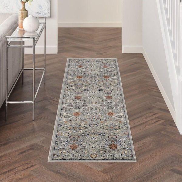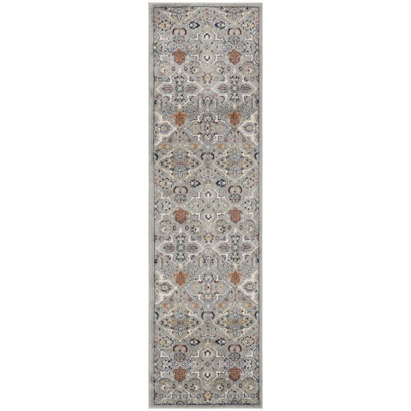 Allur Grey 2 ft. x 8 ft. Abstract Medallion Transitional Runner Area Rug