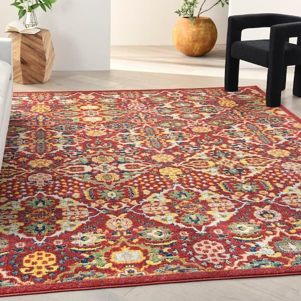 Allur Red Multicolor 8 ft. x 10 ft. Floral Medallion Area Rug
