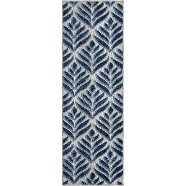 Aloha Blue 2 ft. x 8 ft. Botanical Contemporary Runner Indoor/Outdoor Area Rug