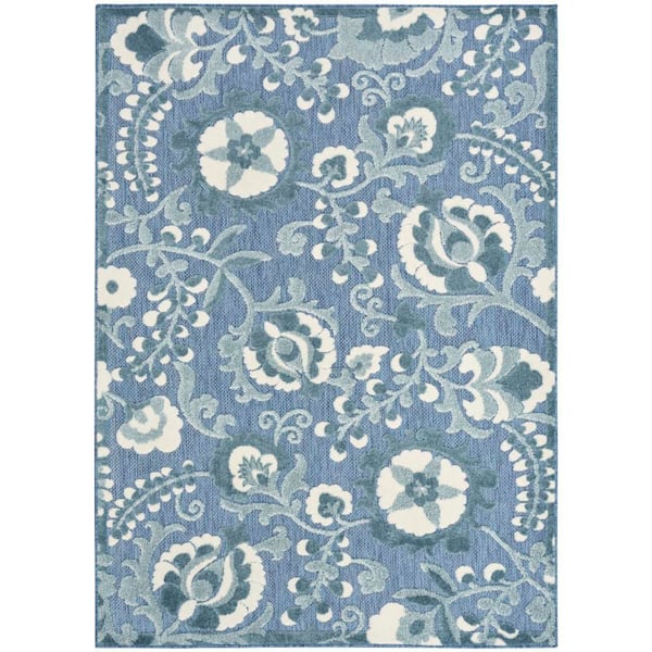 Aloha Blue 4 ft. x 6 ft. Floral Contemporary Area Rug
