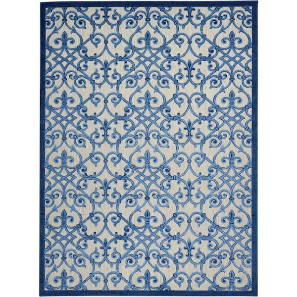 Aloha Gray/Blue 8 ft. x 11 ft. Floral Contemporary Indoor/Outdoor Patio Area Rug
