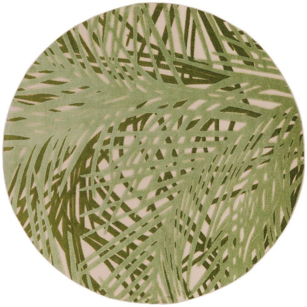 Aloha Ivory Green 8 ft. x 8 ft. Botanical Contemporary Round Area Rug