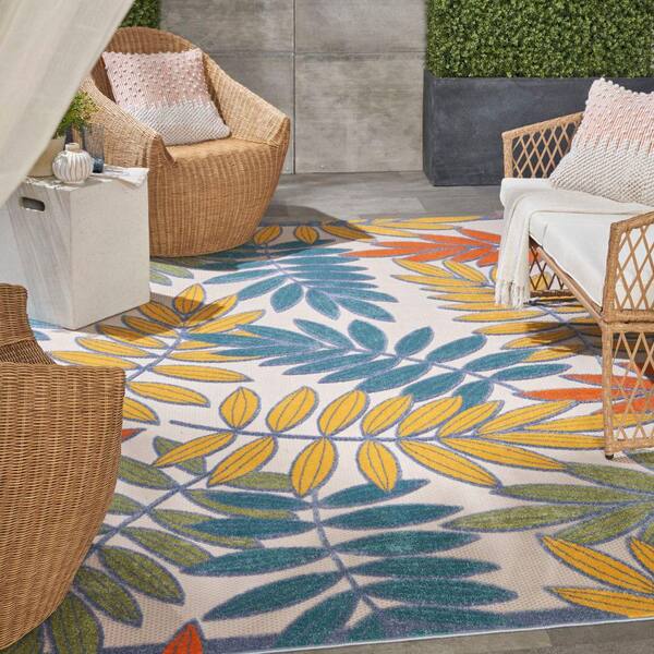 Aloha Ivory Multicolor 10 ft. x 14 ft. Botanical Contemporary Indoor/Outdoor Area Rug