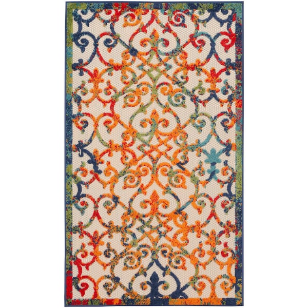 Aloha Multicolor 3 ft. x 5 ft. Floral Contemporary Indoor/Outdoor Kitchen Area Rug
