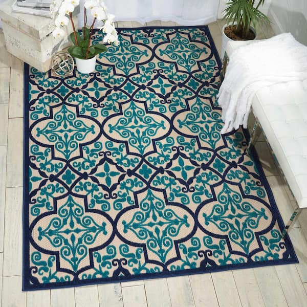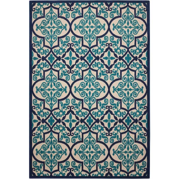 Aloha Navy 5 ft. x 7 ft. Moroccan Bohemian Indoor/Outdoor Patio Area Rug
