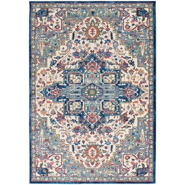 Ankara Global Ivory Navy 4 ft. x 6 ft. Persian Medallion Transitional Area Rug