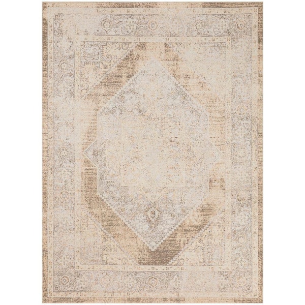 Astra Machine Washable Beige 4 ft. x 6 ft. Center medallion Traditional Area Rug