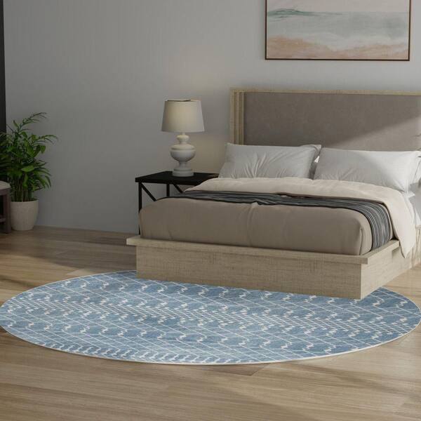 Astra Machine Washable Blue 8 ft. x 8 ft. Moroccan Transitional Round Area Rug