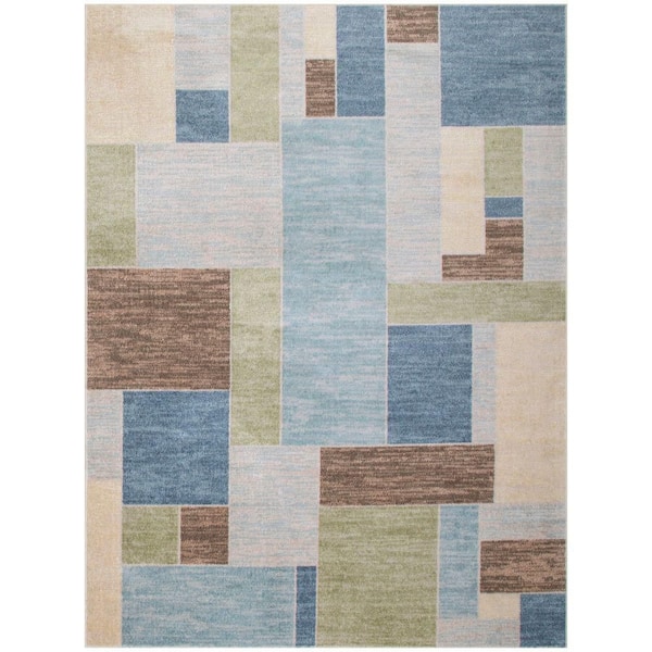 Astra Machine Washable Blue Green Multi 7 ft. x 9 ft. Geometric Contemporary Area Rug
