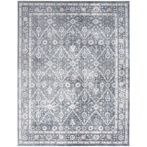 Astra Machine Washable Dark Blue 8 ft. x 10 ft. Distressed Traditional Area Rug
