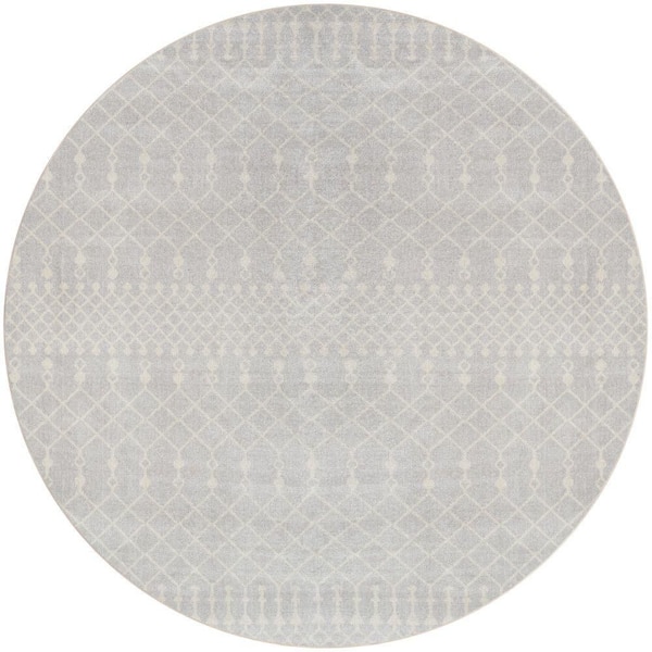 Astra Machine Washable Grey 4 ft. x 4 ft. Moroccan Transitional Round Area Rug
