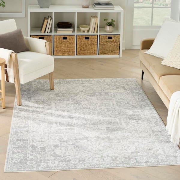 Astra Machine Washable Grey 7 ft. x 9 ft. Distressed Traditional Area Rug