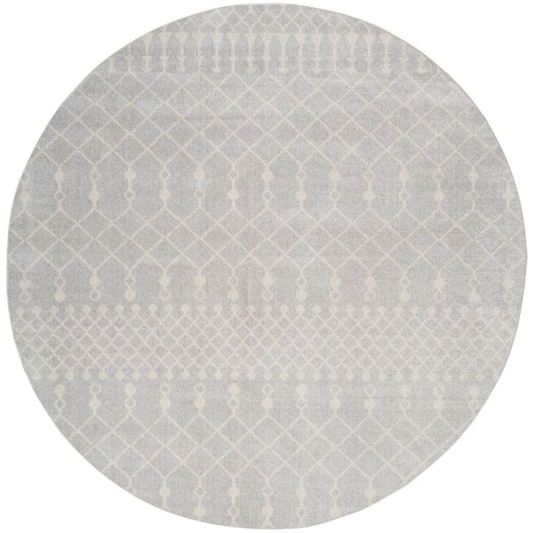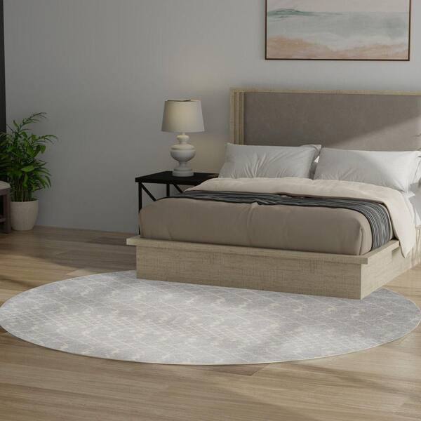 Astra Machine Washable Grey 8 ft. x 8 ft. Moroccan Transitional Round Area Rug