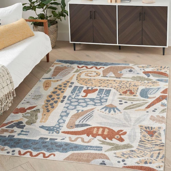 Astra Machine Washable Ivory 5 ft. x 7 ft. Animal Print Contemporary Area Rug