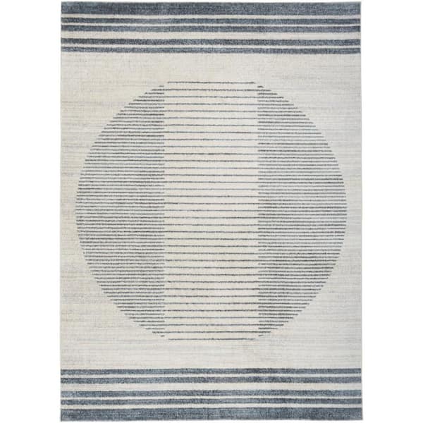 Astra Machine Washable Ivory Blue 4 ft. x 6 ft. Linear Contemporary Area Rug