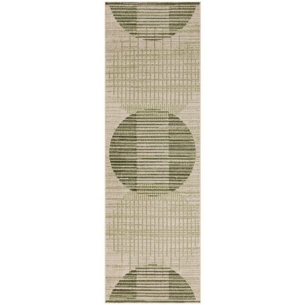 Astra Machine Washable Ivory Olive 2 ft. x 6 ft. Graphic Contemporary Runner Area Rug