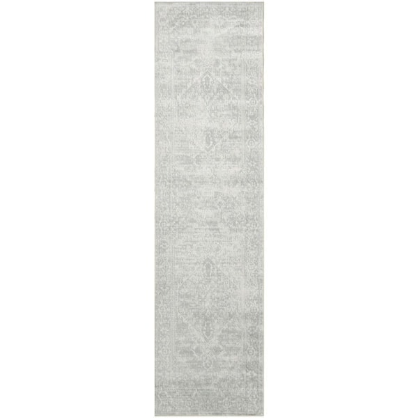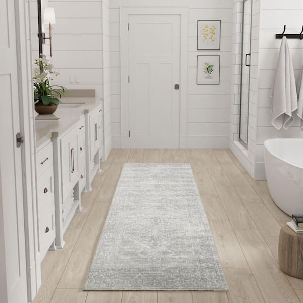 Astra Machine Washable Light Grey 2 ft. x 8 ft. Center medallion Traditional Runner Area Rug