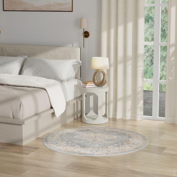 Astra Machine Washable Silver Blue 5 ft. x 5 ft. Center medallion Traditional Round Area Rug