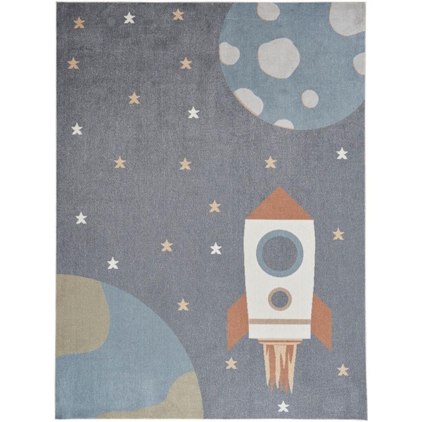 Astra Machine Washable Sky Blue 8 ft. x 10 ft. Graphic Contemporary Area Rug
