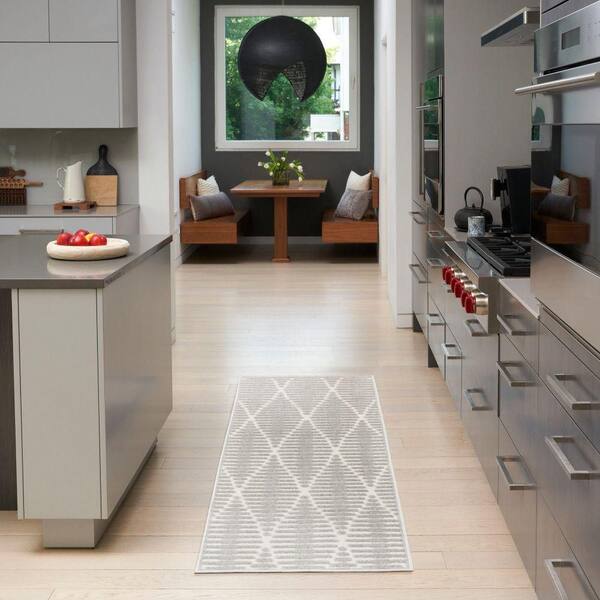 Casual Light Grey 2 ft. x 6 ft. Diamond Contemporary Runner Area Rug