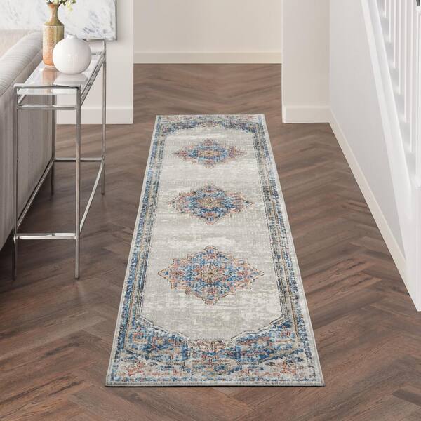 Concerto Blue/Grey 2 ft. x 10 ft. Bordered Traditional Kitchen Runner Area Rug