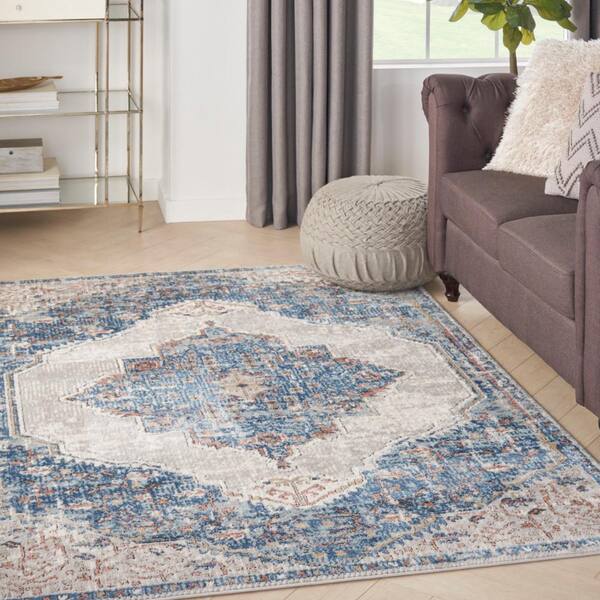 • Blue/Grey Polypropylene Area Rug with 1/3 inch thickness