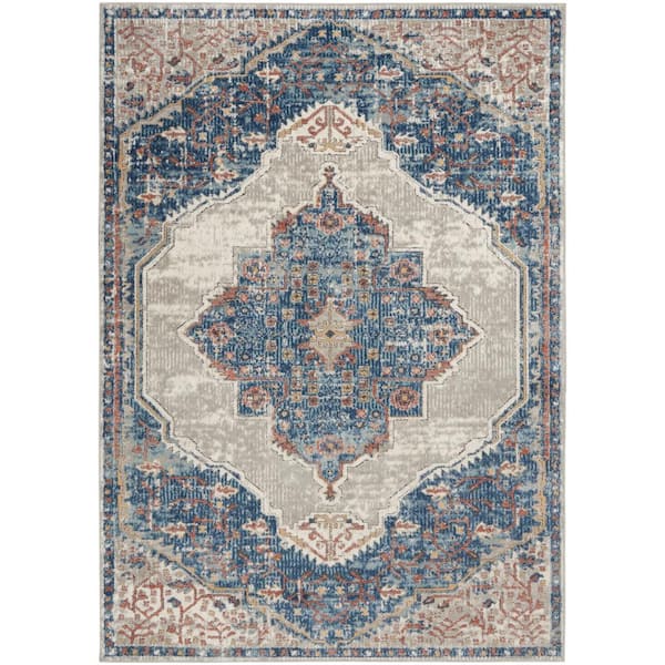Concerto Blue/Grey 5 ft. x 7 ft. Border Traditional Area Rug