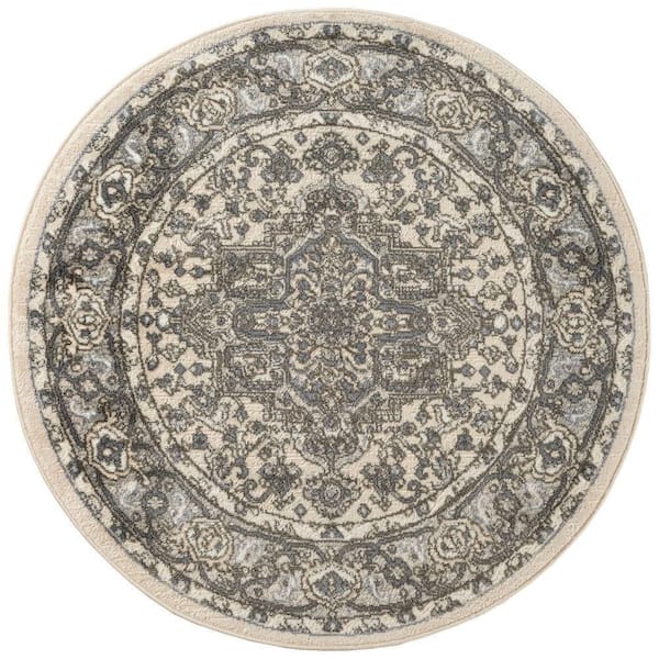 Concerto Ivory Blue 4 ft. x 4 ft. Center medallion Transitional Round Area Rug