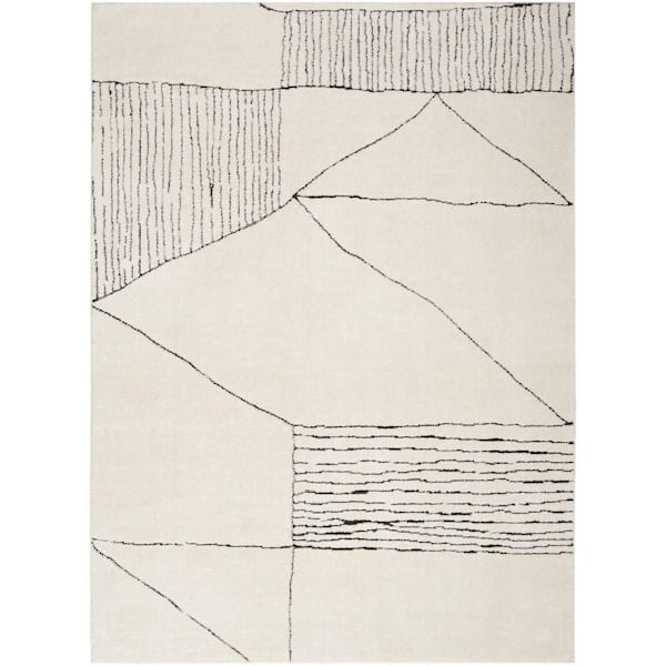 Cozy Modern Ivory Black 4 ft. x 6 ft. Linear Contemporary Area Rug