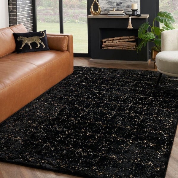 Cozy Shimmer Black 8 ft. x 10 ft. All-over design Contemporary Area Rug