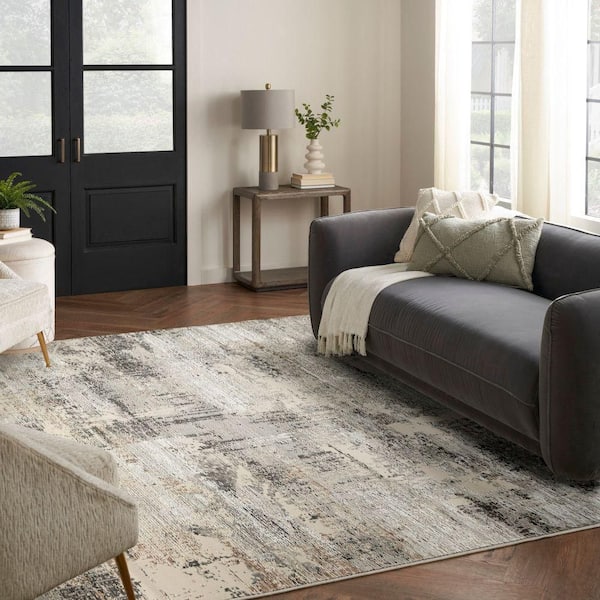 Eco-Friendly Beige Grey 8 ft. x 10 ft. Abstract Contemporary Area Rug