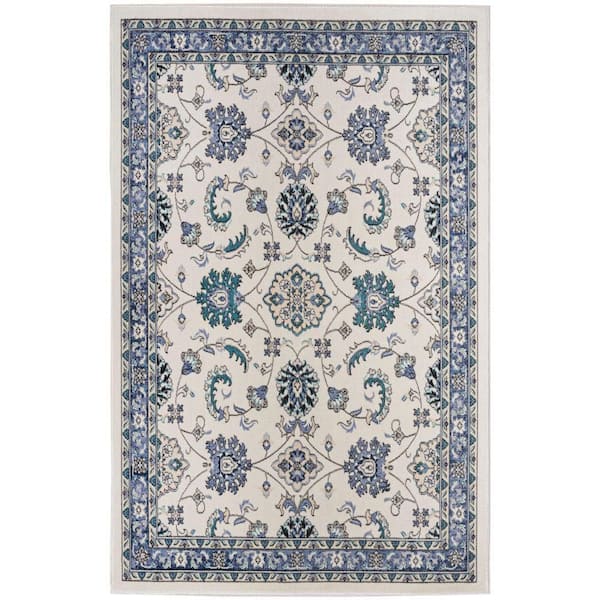 Essentials Ivory Blue 4 ft. x 6 ft. Center medallion Traditional Area Rug